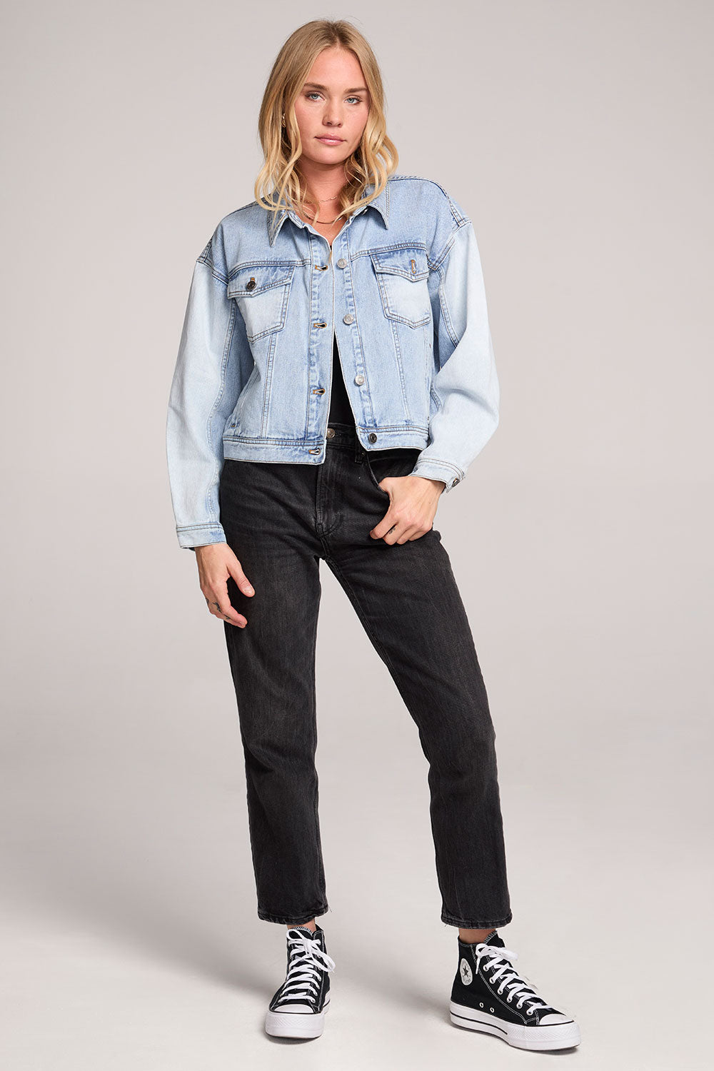 The Analyse Riptide Jacket features a cropped silhouette in a classic jean jacket style, inspired by vintage Americana.
