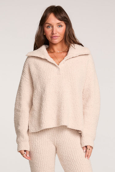 The Freidda Sweater offers a comfortable yet chic lounge look with its soft, fuzzy textured fabric and relaxed boxy fit.