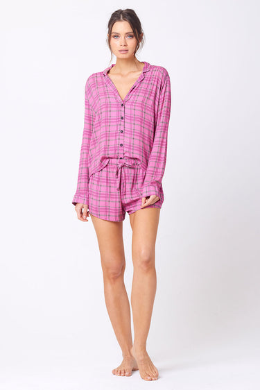 Our Long Sleeve Shirt and Short Set features imported, 100% Rayon fabric.