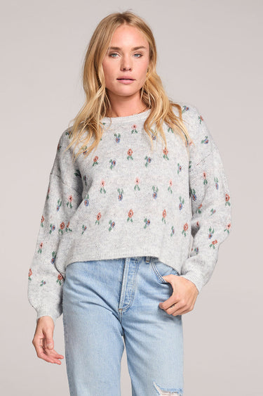 The Annika Sweater embodies Copenhagen cool with a delicate petite floral motif and a vintage-inspired high neckline.