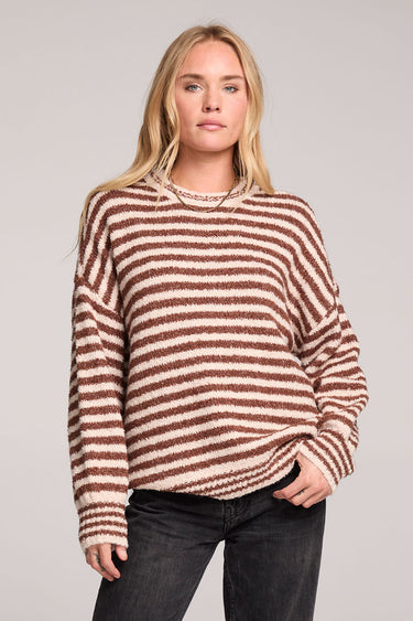 The Autumn Sweater channels vintage 70s charm with classic chocolate and cream stripes.