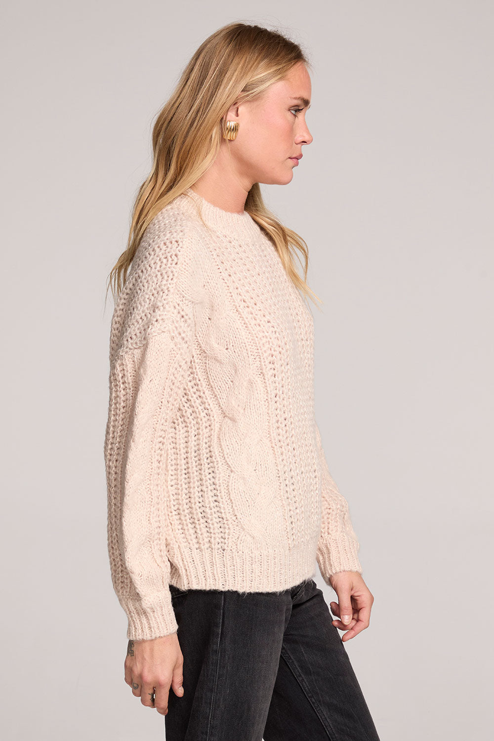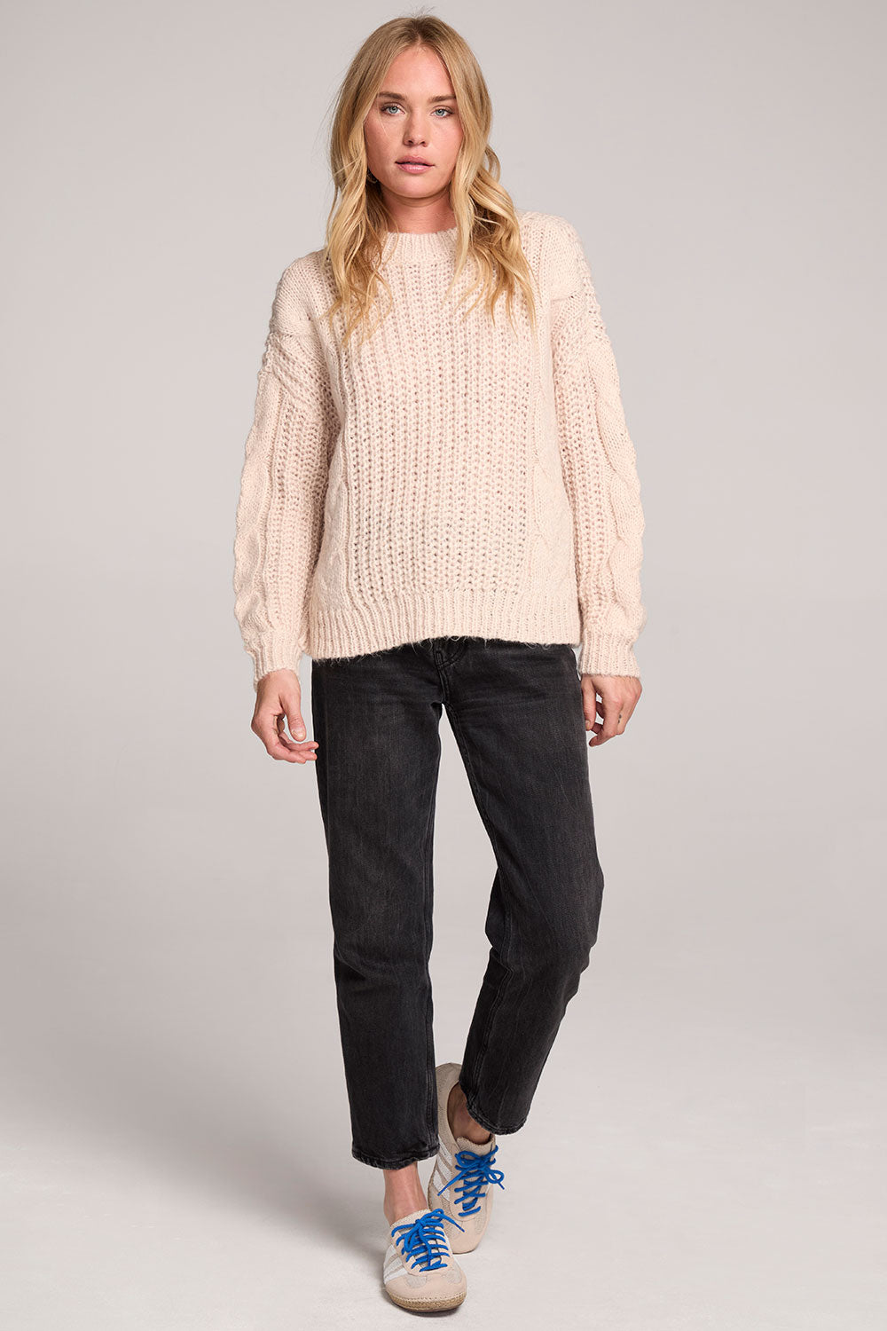The Lionna Vanilla Sweater features ribbed textured fabric that adds tactile appeal to its cozy, oversized fit.