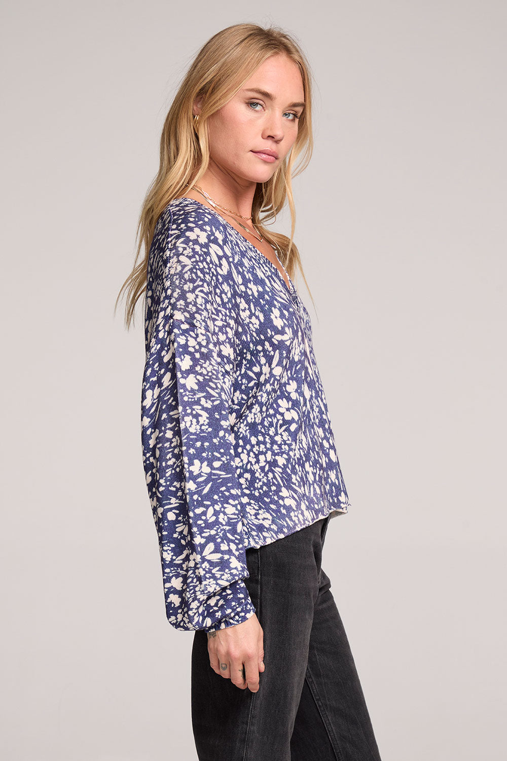 The Payton Sweater features a dappled azure and cream pattern that evokes Mediterranean elegance.