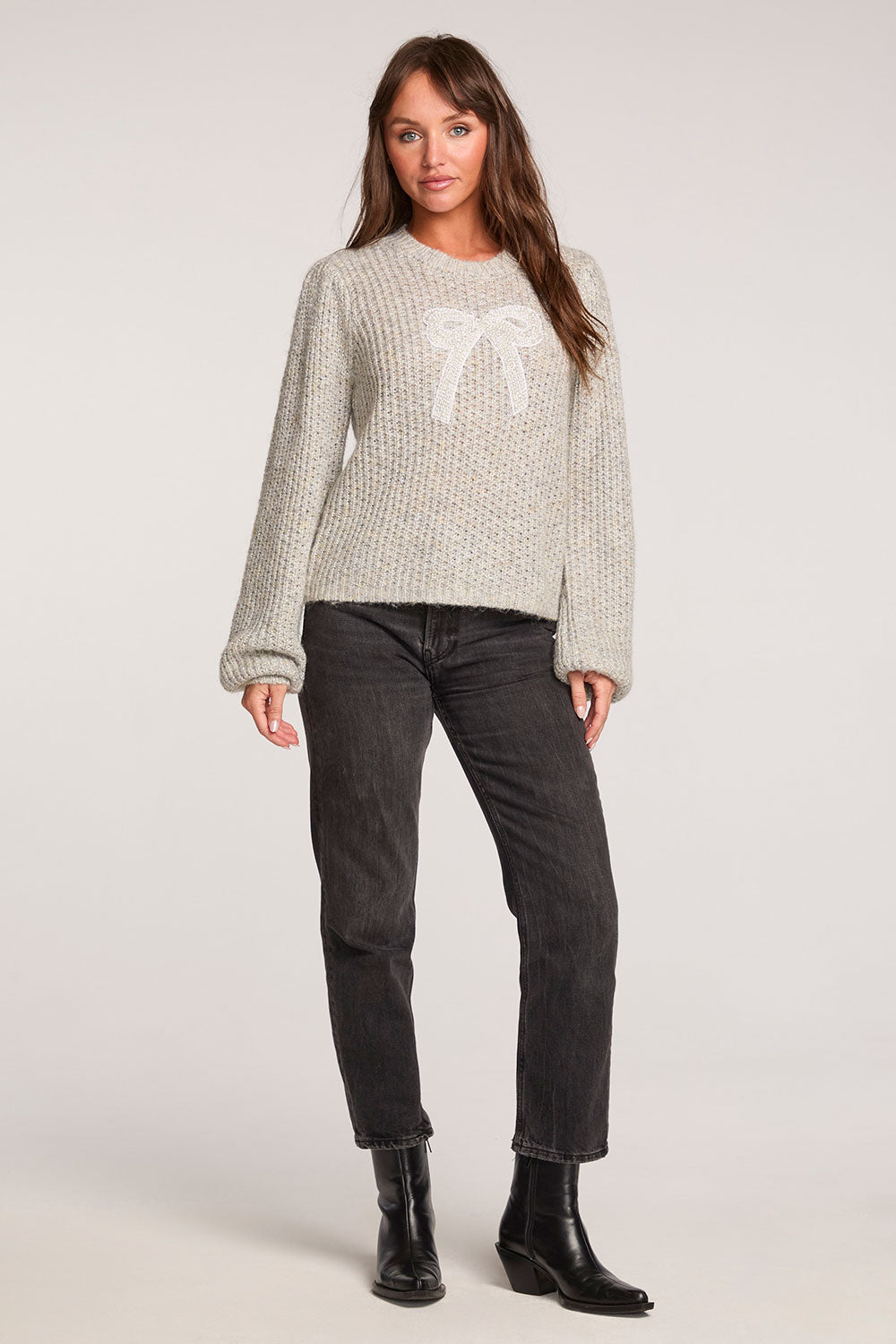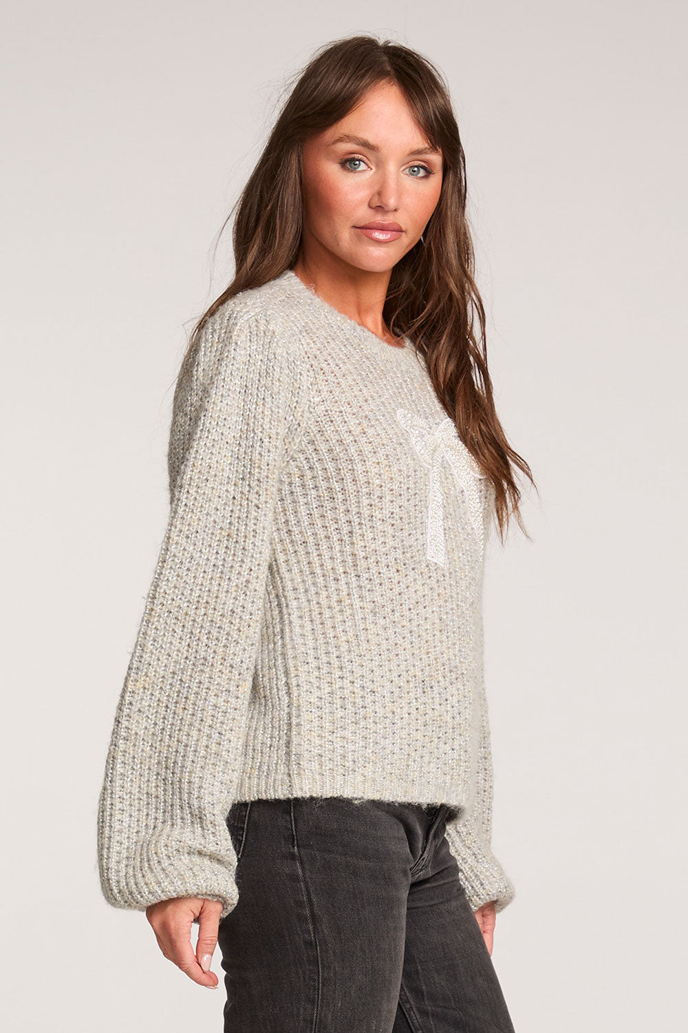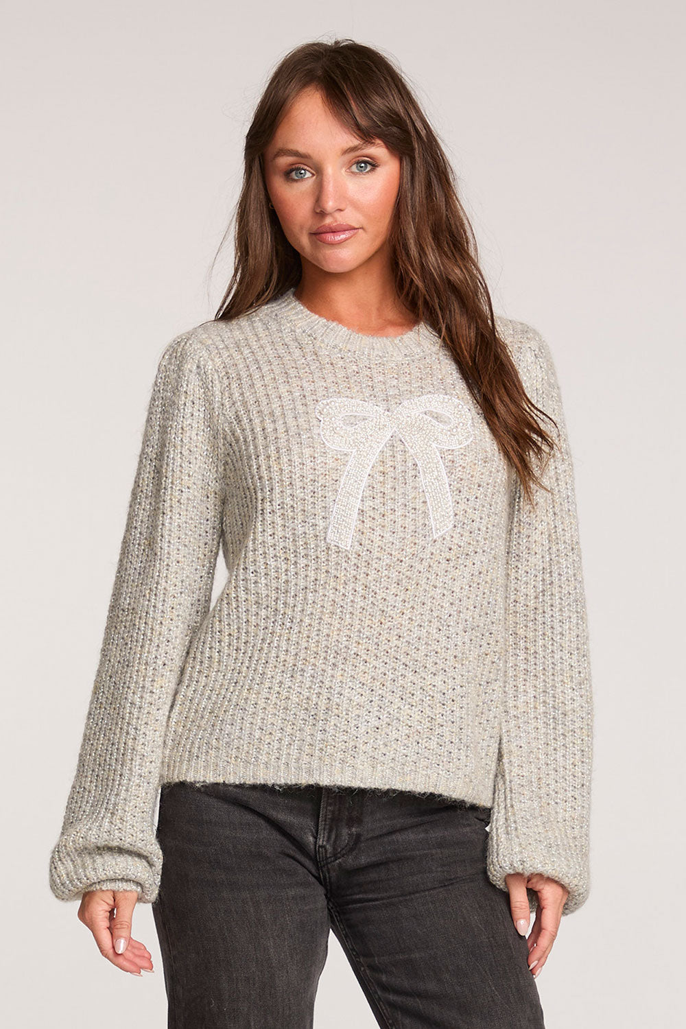 A sweet knit bow on the front adds an unexpected, playful touch of whimsy, making this piece both delightful and sophisticated for any wardrobe.