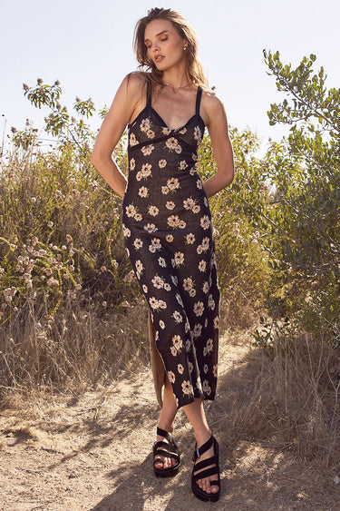 The delicate floral print and spaghetti straps channel vintage charm, while the midi length keeps things contemporary and wearable.