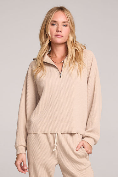 The Half Zip Sand Raglan Pullover is a style staple in loungewear, combining effortless comfort with adaptable design.