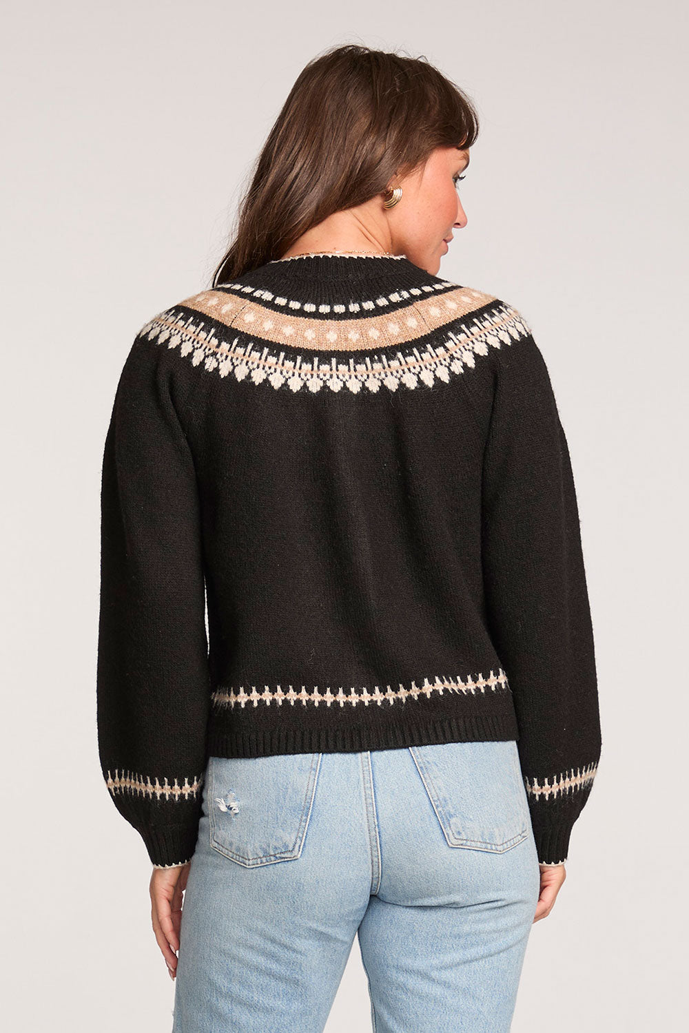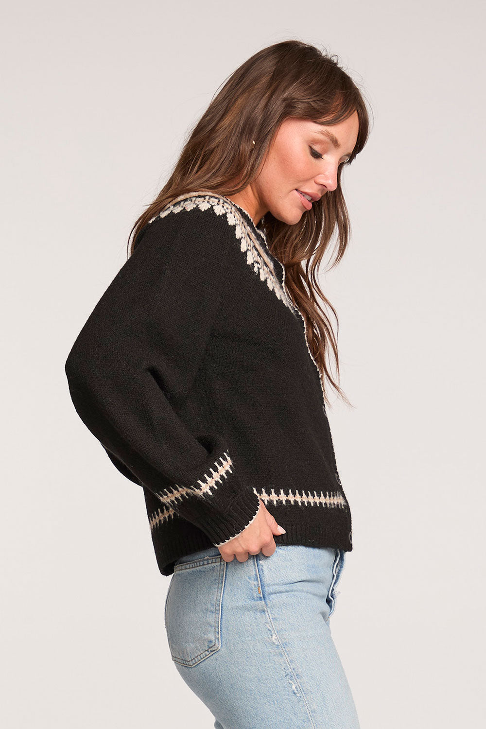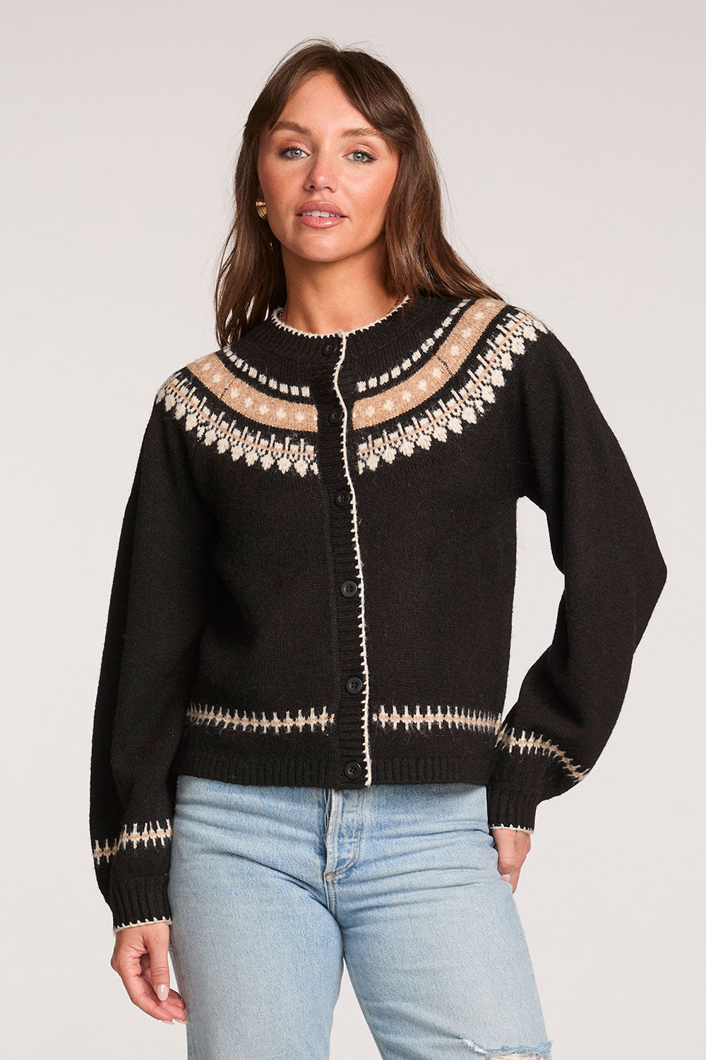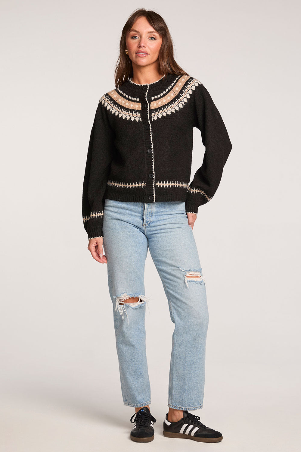 The Joss Sweater combines Nordic chic with modern sophistication in a classic black cardigan.