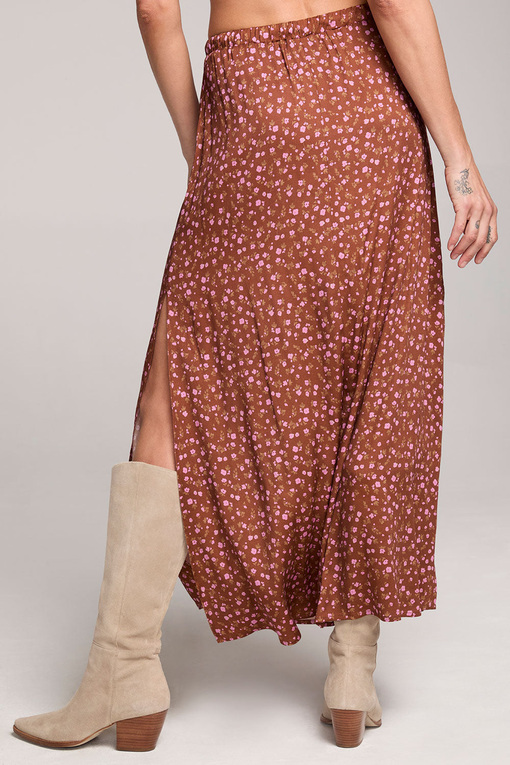 The Seraphyne Mocha Midi Skirt features a timeless design with a clean silhouette and subtle textured gathering at the waistline for an elegant finish.