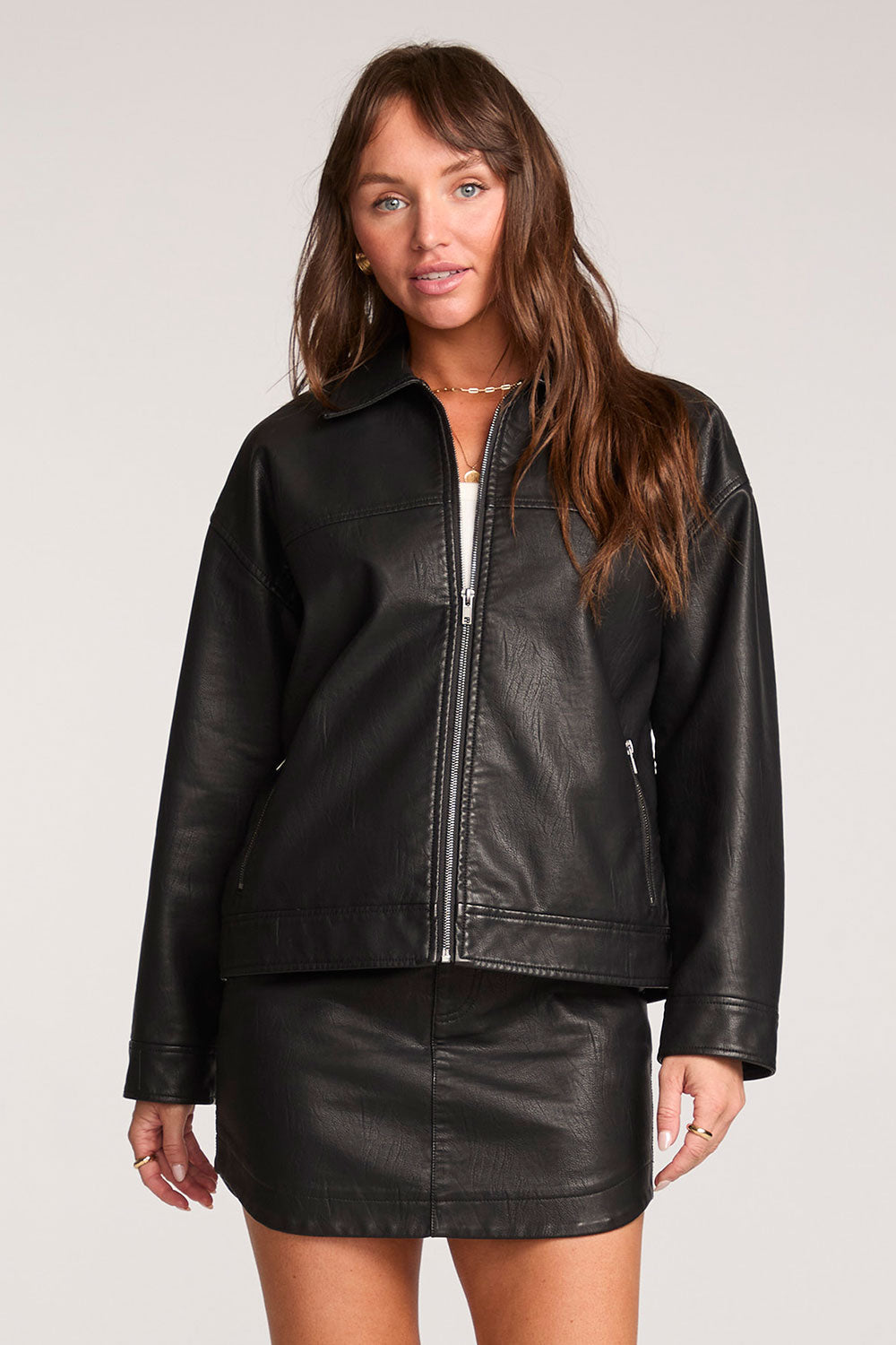 The Vespera Jacket exudes effortless sophistication with its leather-look material and boxy fit, perfect for channeling your inner bad girl.